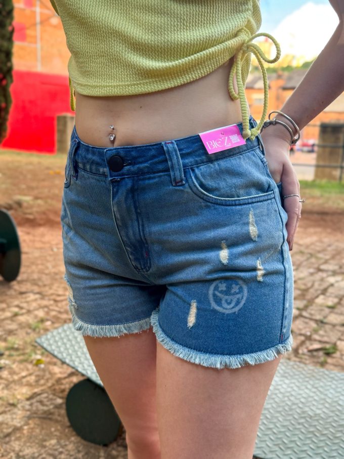 Shorts Jeans Feminino BIEZ – 100% Algodão, Barra Desfiada